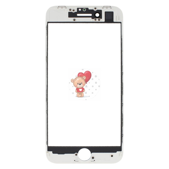Стекло модуля для Apple iPhone 8 в сборе с рамкой и OCA пленкой Белый - OR (Mitsubishi)
