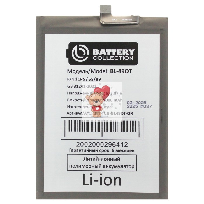 Аккумуляторная батарея для Tecno Spark 20 Pro+ (BL-49OT) - Battery Collection (Премиум)