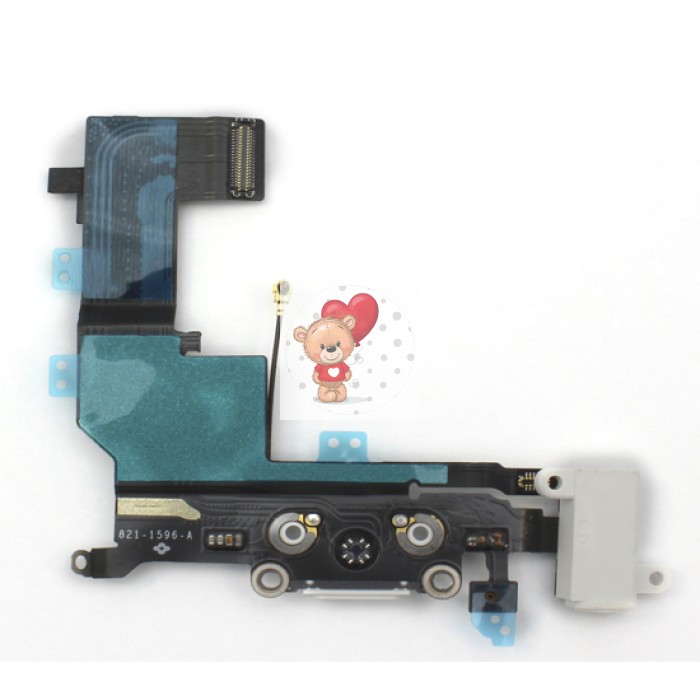 Шлейф для iPhone 5S на системный разъем/разъем гарнитуры/микрофон Белый