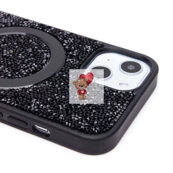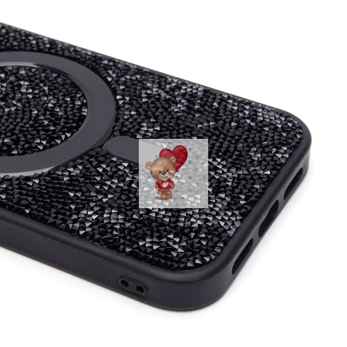 Чехол-накладка для Apple iPhone 13 россыпь кристаллов (титановый черный) - SM029 POSH SHINE SafeMag