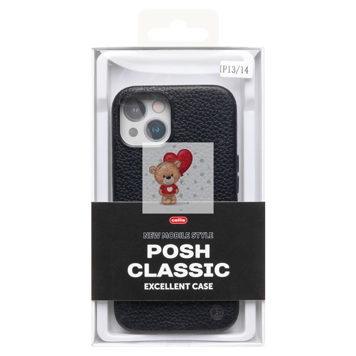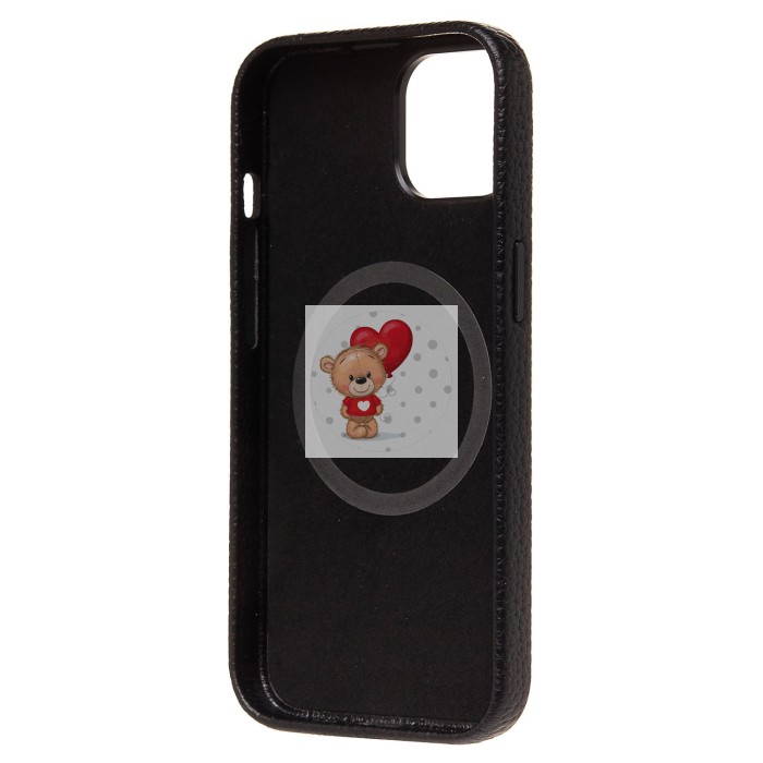 Чехол-накладка для Apple iPhone 14 Натуральная кожа зернистая (черный) Cellis SM030 SafeMag