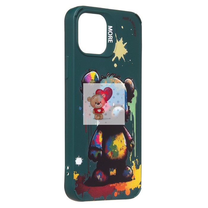 Чехол-накладка для Apple iPhone 12 (медведь) (темно-зеленый) - SC335