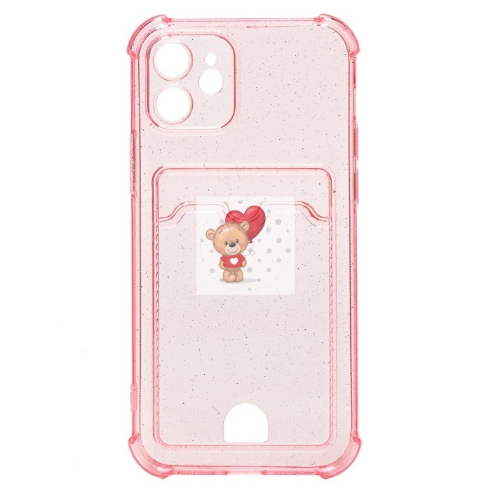 Чехол-накладка для Apple iPhone 12 (розовый) - SC300 с картхолдером