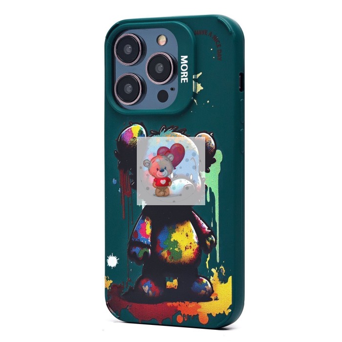 Чехол-накладка для Apple iPhone 14 Pro (медведь) (темно-зеленый) - SC335