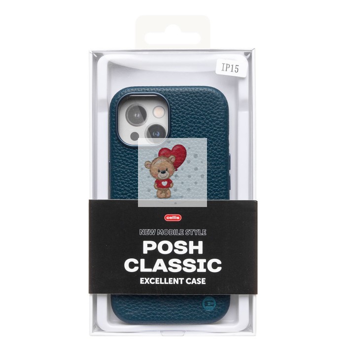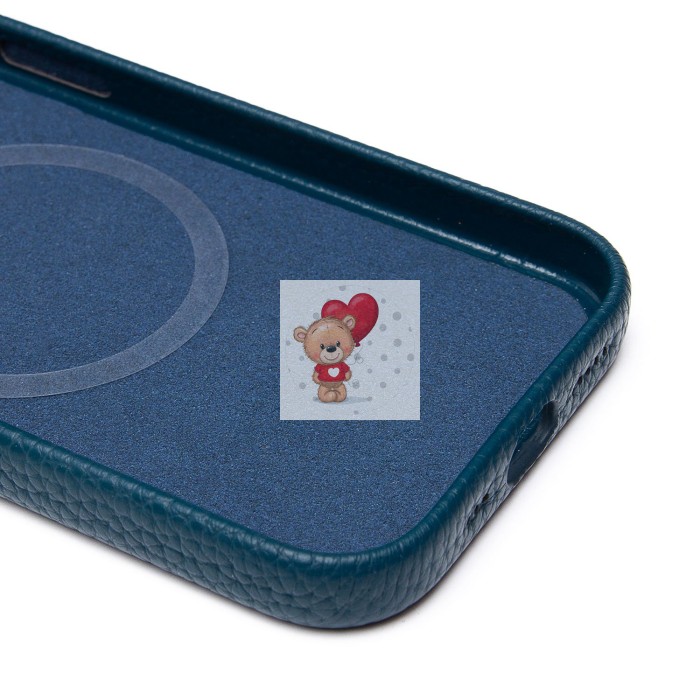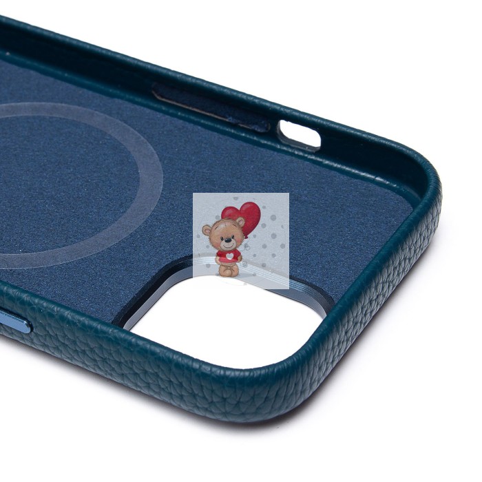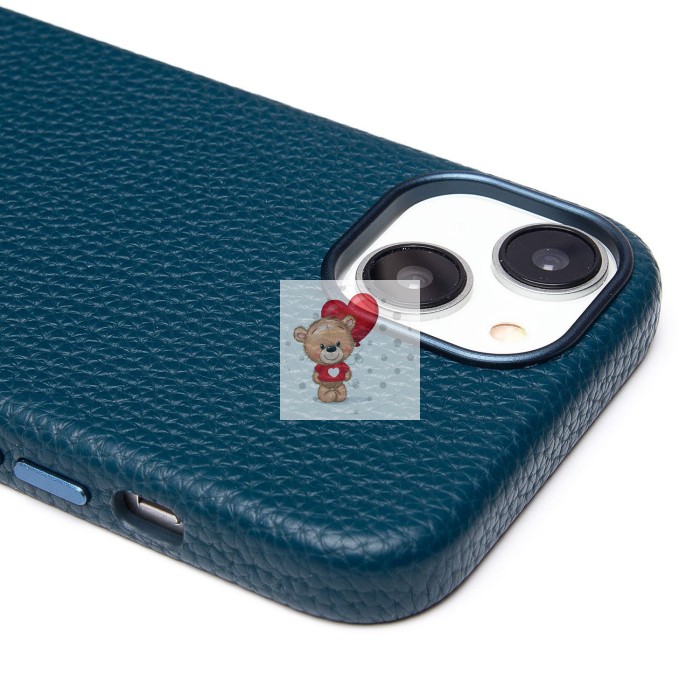 Чехол-накладка для Apple iPhone 15 Натуральная кожа зернистая (темно-синий) Cellis SM030 SafeMag