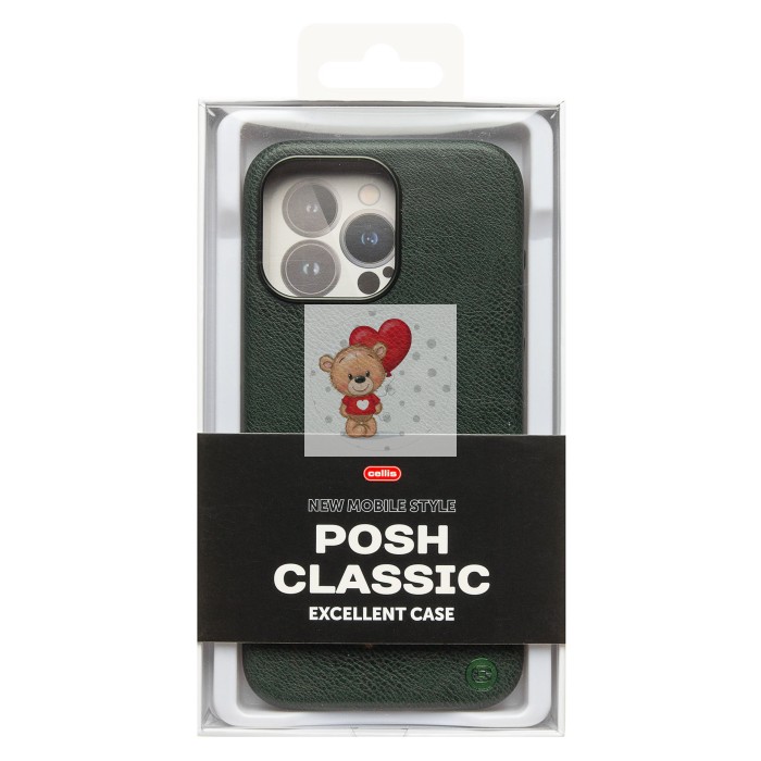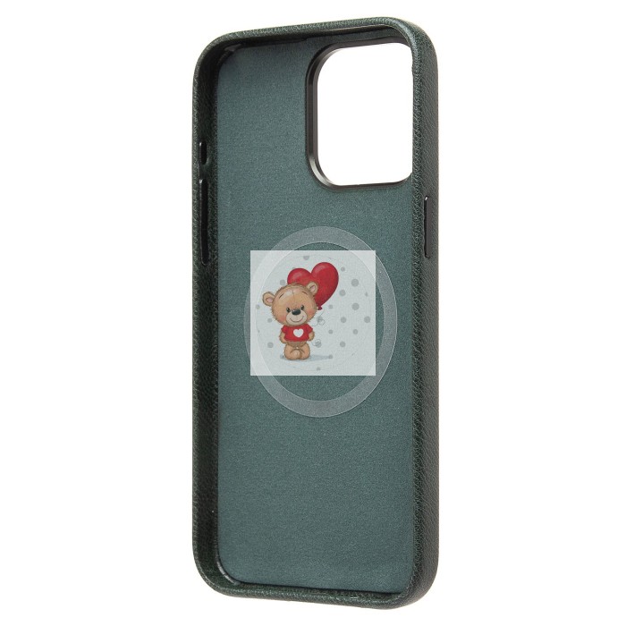 Чехол-накладка для Apple iPhone 15 Pro Max Натуральная кожа (темно-зеленый) Cellis SM031 SafeMag