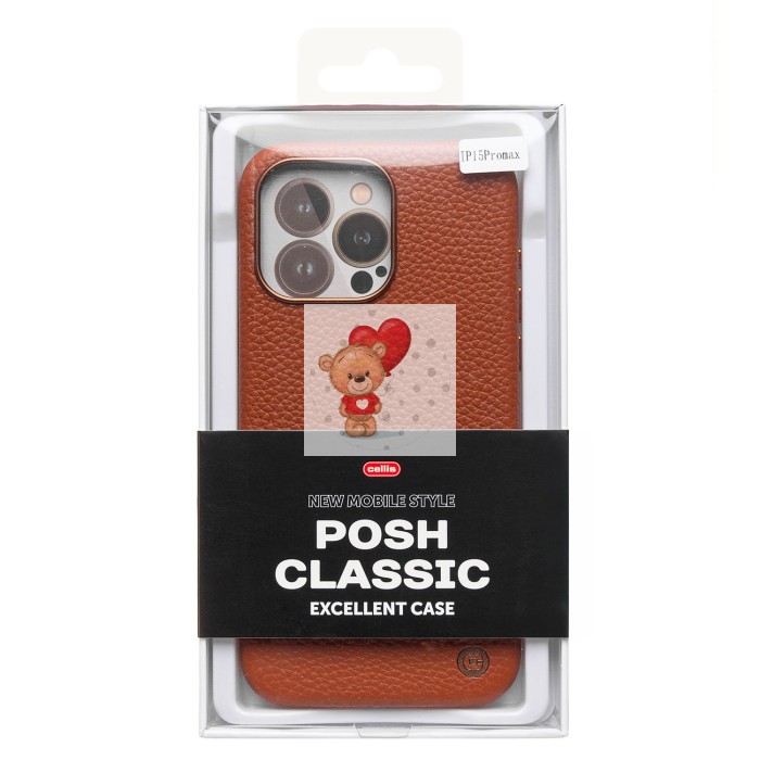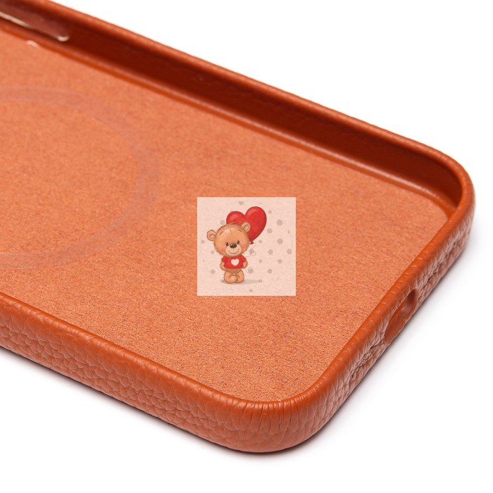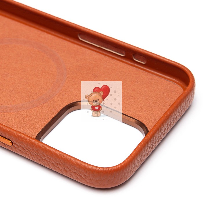 Чехол-накладка для Apple iPhone 15 Pro Max Натуральная кожа зернистая (коричневый) Cellis SM030 SafeMag