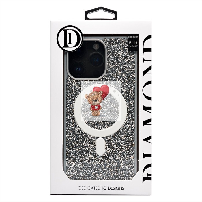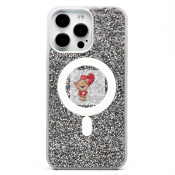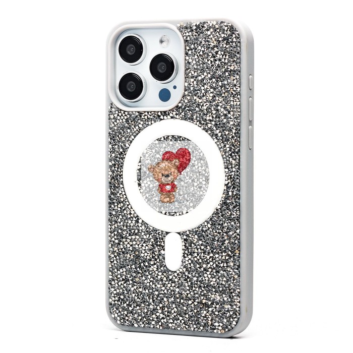 Чехол-накладка для Apple iPhone 15 Pro Max россыпь кристаллов (титановый белый) - SM029 POSH SHINE SafeMag