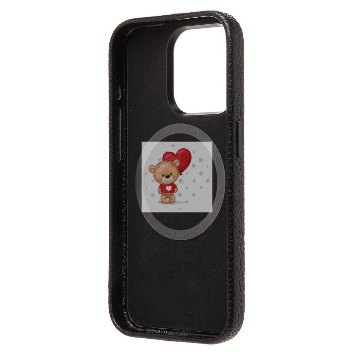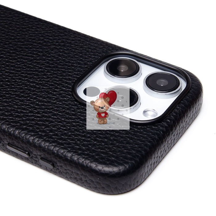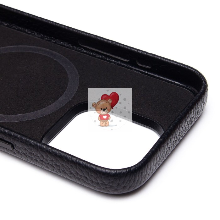 Чехол-накладка для Apple iPhone 15 Pro Натуральная кожа зернистая (черный) Cellis SM030 SafeMag