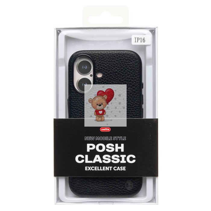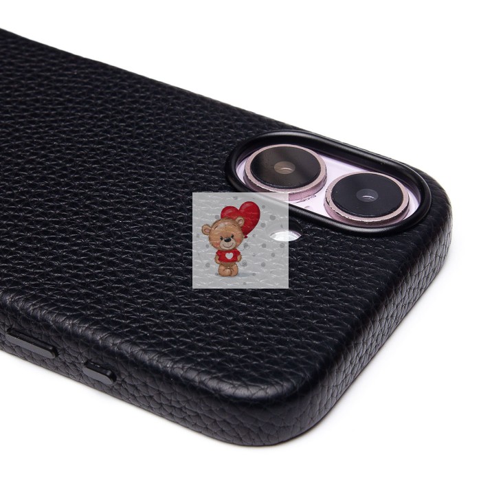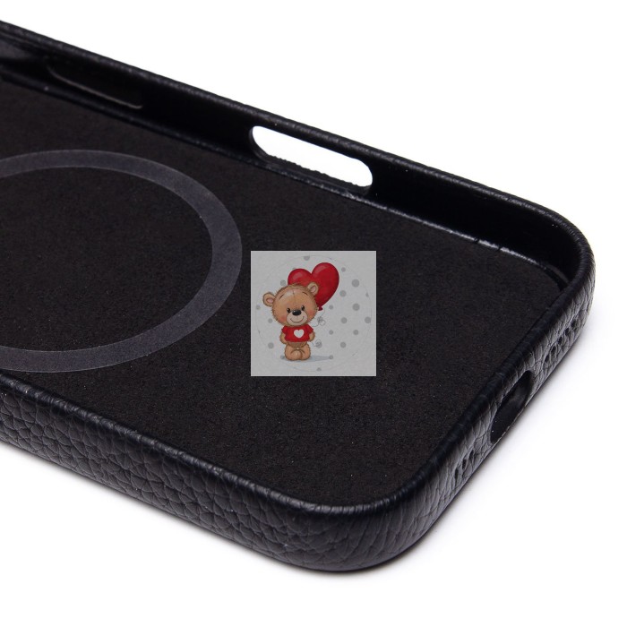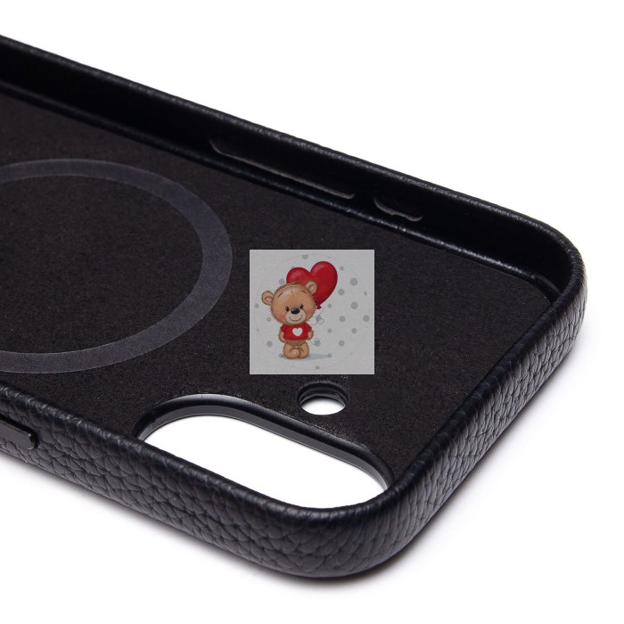 Чехол-накладка для Apple iPhone 16 Натуральная кожа зернистая (черный) Cellis SM030 SafeMag