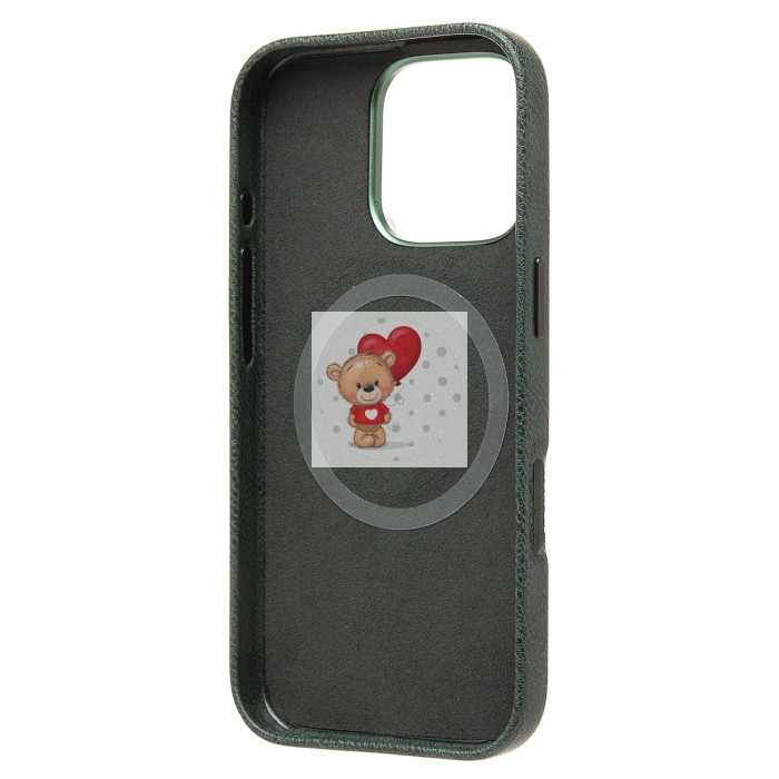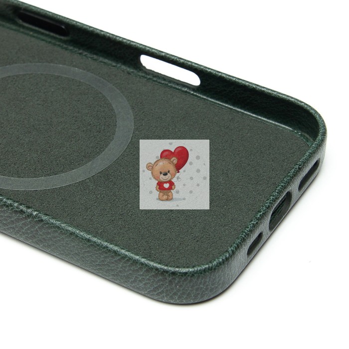 Чехол-накладка для Apple iPhone 16 Pro Натуральная кожа (темно-зеленый) Cellis SM031 SafeMag