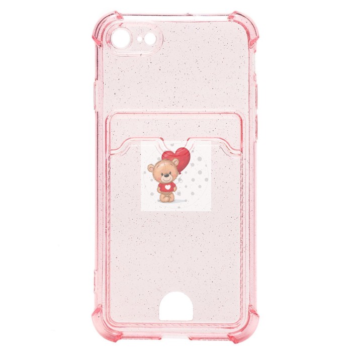 Чехол-накладка для Apple iPhone 7 (розовый) - SC300 с картхолдером