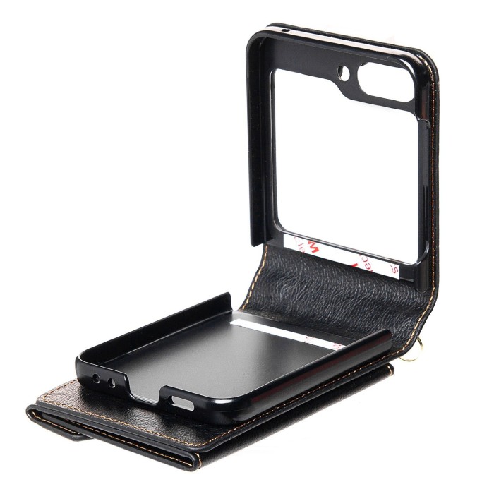 Чехол-накладка для Samsung Galaxy Flip 5 (черный) - FLIP экокожа с ремешком