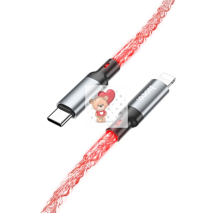 Кабель Type-C - Lightning Hoco U112 (3A, 20W, PD, прозрачный, светодиодный) Серый
