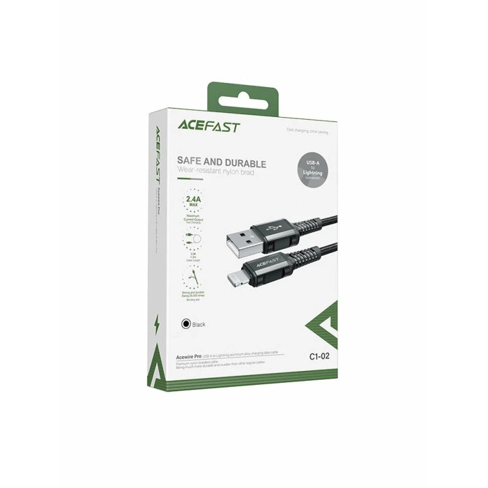 Кабель USB - Lightning Acefast C1-02 (2.4A, MFI, оплетка нейлон, 1,2 м) Черный