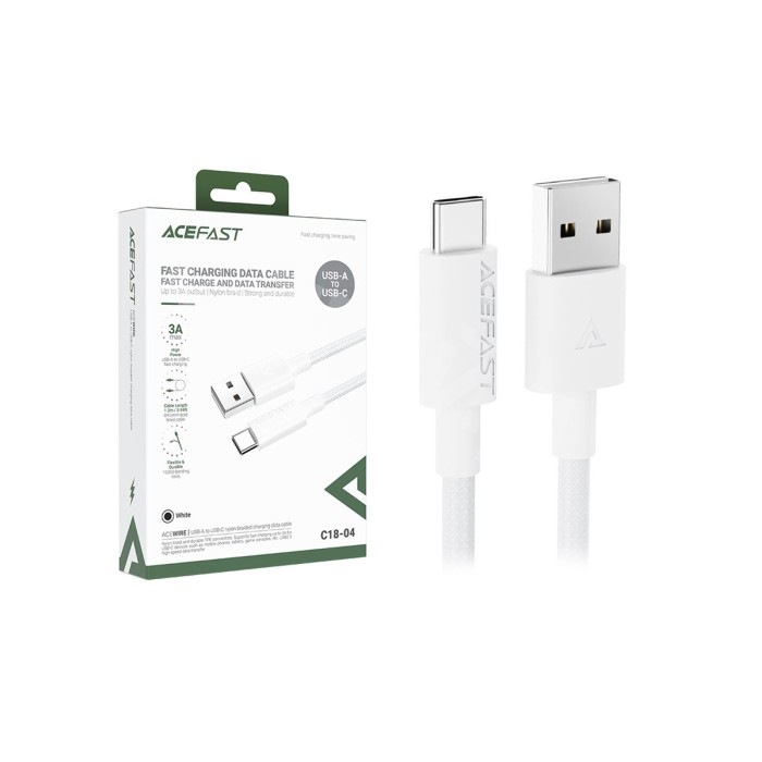 Кабель USB - Type-C Acefast C18-04 (3A, оплетка нейлон, 1,2 м) Белый