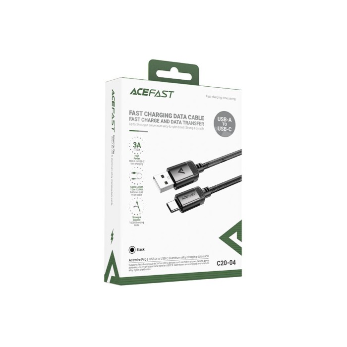 Кабель USB - Type-C Acefast C20-04 (3A, оплетка нейлон, 1,2 м) Черный