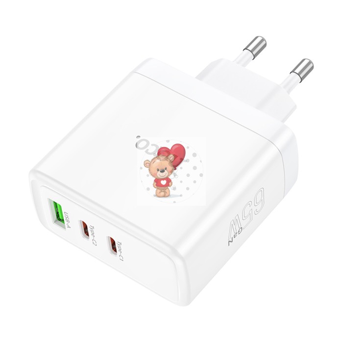 Сетевое зарядное устройство USB/Type-C Hoco N30 (65W, QС3.0, PD, 3 порта, GaN) Белый