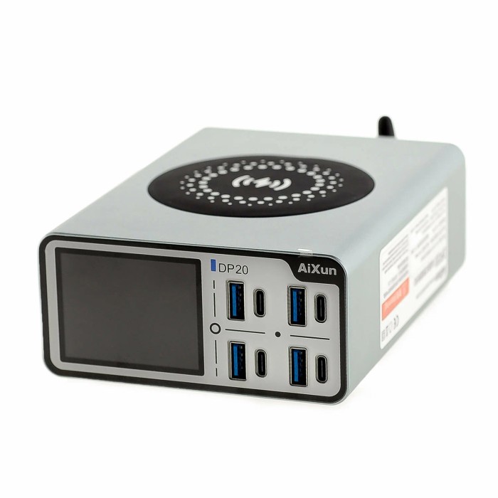 Зарядная станция Aixun DP20 (200W, 8 портов 4USB-QC3.0/4Type-C-PD, Qi 15W, LCD)