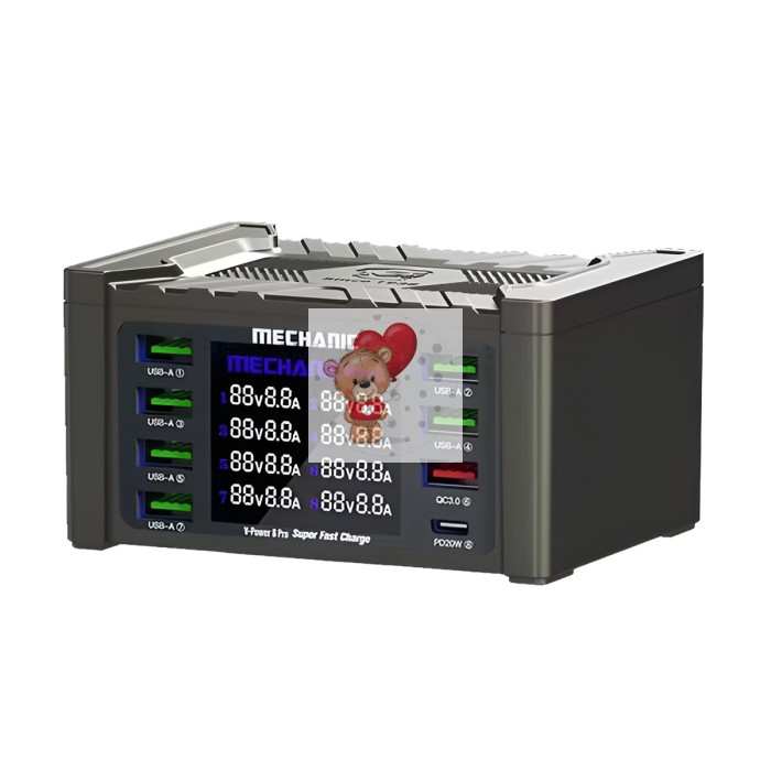 Зарядная станция Mechanic V-Power 8 Pro (110W, 8 портов 6USB/USB-QC3.0/Type-C-PD, Qi 15W)