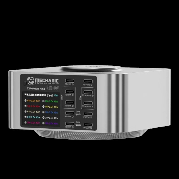 Зарядная станция Mechanic X Power Max (300W, 10 портов, 10 Type-C-PD, Qi 15W, LCD)