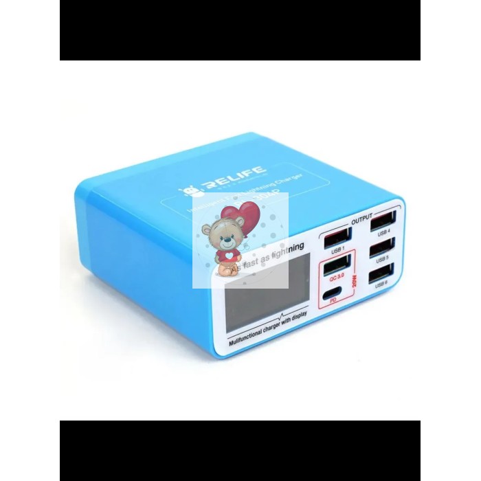 Зарядная станция Relife RL-304P (40W, 6 портов 4USB/1USB QC3.0/1Type-C PD, LCD)