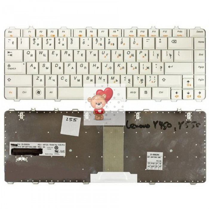 Клавиатура для ноутбука Lenovo Y450 Белая р/n: 25-008291, V-10120AS1-RU, 25-008389