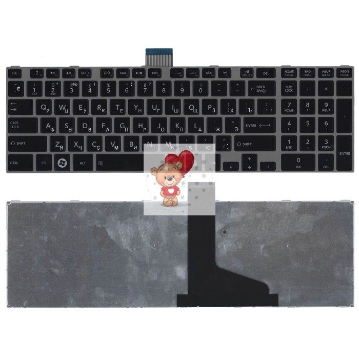 Клавиатура для ноутбука Toshiba C850 cерая рамка p/n: NSK-TV0SV, NSK-TV0SU, NSK-TT0SV